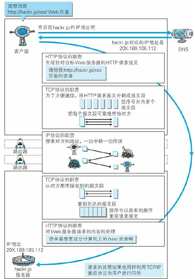 介绍了HTTP协议报文的构成,响应状态码,请求与响应的首部字段。为了应对新场景需求的Ajax,Comet,WebSocket等技术。通过HTTPS与用户认证实现安全通信,一些常见的Web攻击技术。